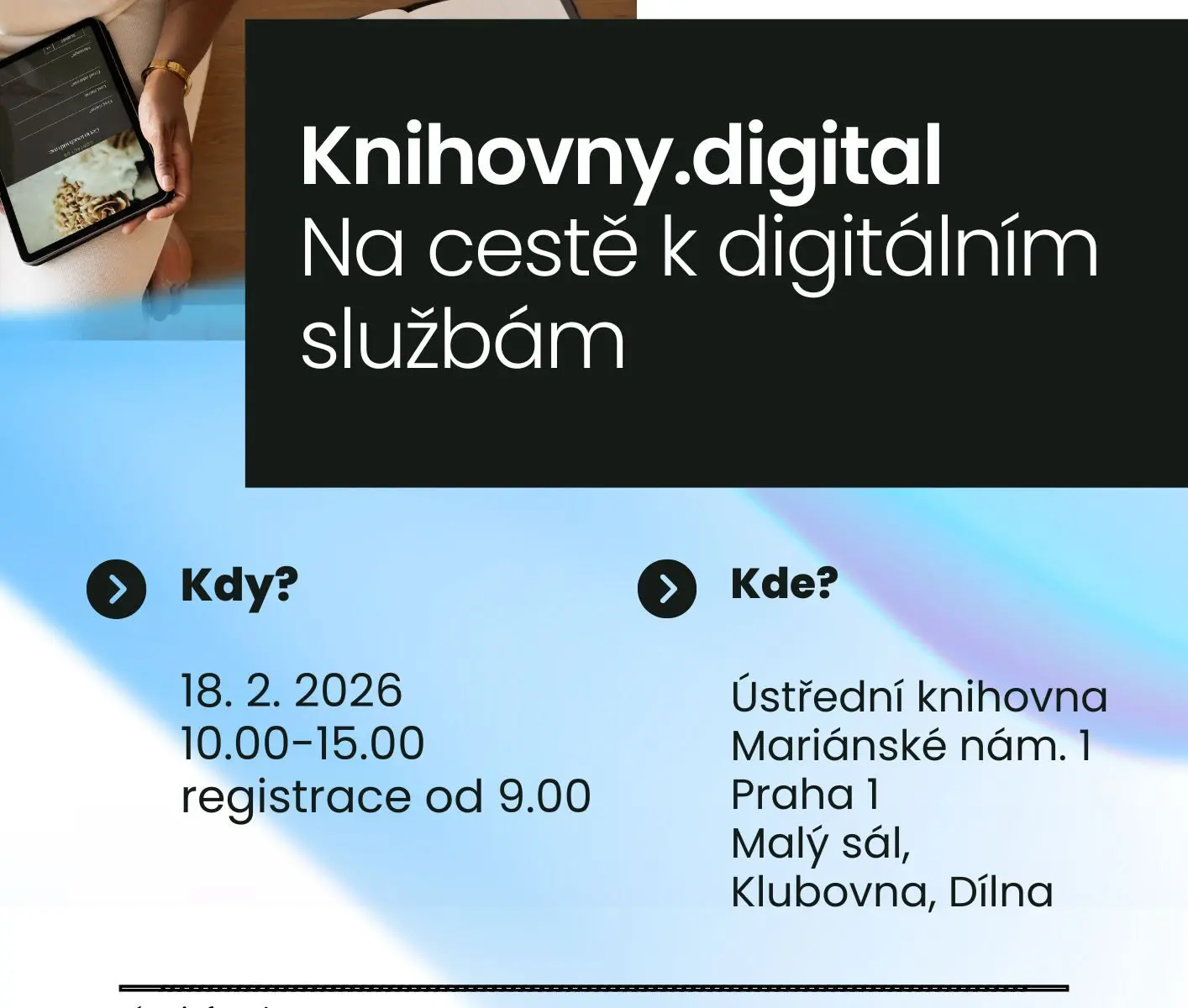 Pozvánka na konferenci, která se uskuteční 18. února 2026 v prostorách Ústřední knihovny Městské knihovny v Praze.