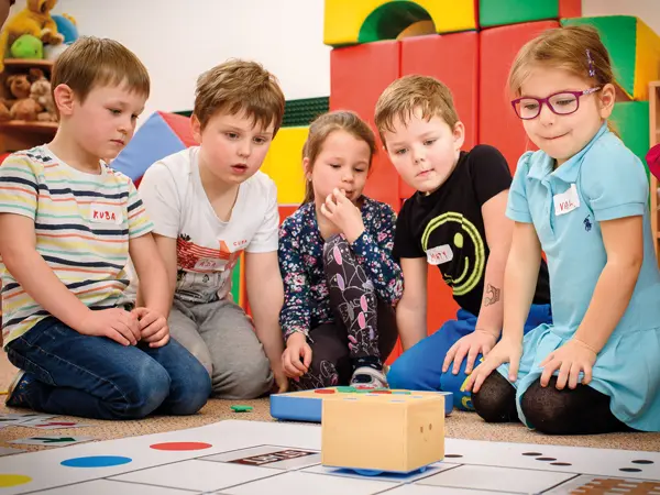 Digitální svět ovšem nejsou jen roboti. V největší míře přicházíme do styku s méně viditelným fenoménem, kterým je internet. I děti tráví na internetu mnoho času prostřednictvím různých zařízení, jako je chytrá televize, smartphone nebo tablet. Protože je internet dobrý sluha, ale zlý pán, rozhodli jsme se vydat i cestou prevence rizikového chování a digitálního wellbeingu. Během lekce Co je to internet? pomáháme dětem objevovat výhody i nástrahy, které používání internetu přináší. Děti si například vyzkouší roli dat, která putují po síti mezi jednotlivými zařízeními. V lekci se věnujeme také tématům fake news, ověřování informací a sdílení osobních údajů, na která je potřeba si dávat velký pozor. Neopomíjíme ale ani benefity internetu, takže na závěr děti odcházejí s vědomím, že internet nám může dobře posloužit, když ho budeme používat rozumně a s mírou.