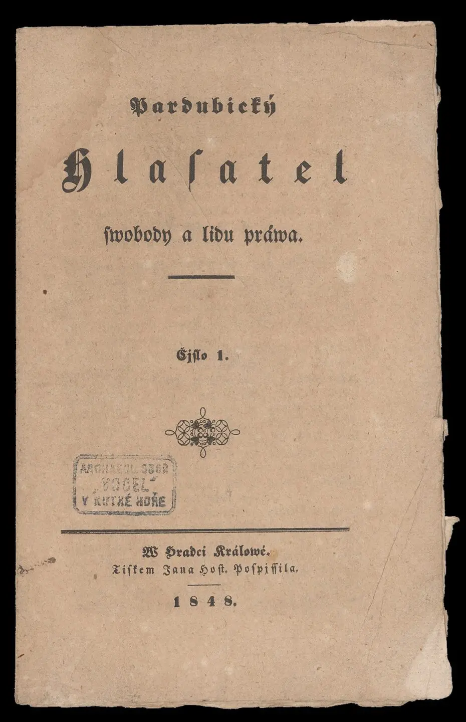 Nejstarší periodikum vydané v Pardubicích je neodmyslitelně spojeno se jménem nadšeného vlastence Josefa Bojislava Pichla (1813–1888), který po promoci na Karlově univerzitě v roce 1843 přijal místo praktického lékaře právě v Pardubicích. Ve svých vzpomínkách se k tomuto období vrací především kvůli neúspěšnému pokusu uzdravit smrtelně zraněného dopravního inženýra Jana Pernera. Po příjezdu do města perníku se aktivně zapojil do společenského života pořádáním besed a koncertů. Odtud byl již malý krůček k vydávání vlastního politického periodika pro širokou veřejnost. Tento úmysl zrealizoval v březnu 1848 po pražské revoluci, kdy předal rukopis pro tisk novin svému příteli Janu Hostivítu Pospíšilovi, jenž vlastnil tiskárnu v blízkém Hradci Králové. První pardubické periodikum Hlasatel svobody a lidu práva tak bylo vytištěno 18. března 1848 v sousedním městě.