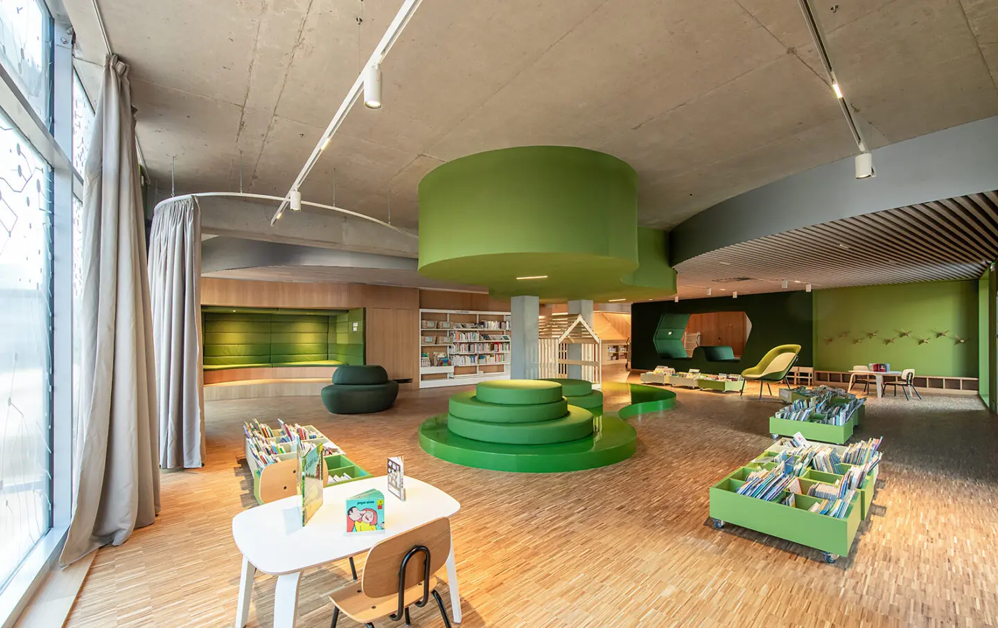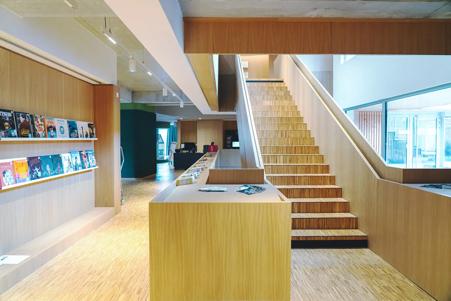 Tým 11 knihovníků tři roky vylepšoval architektův návrh a proměňoval budovu v místo, které je praktické pro návštěvníky i pohodlné pro personál. Díky jejich zkušenostem vznikly chytré detaily: pomalé zavírání dveří, ergonomické rozmístění počítačů a RFID systému, praktické knihovní vozíky, kontejnery s kolečky a pohyblivým dnem či automaty na vracení knih. Do prostoru se podařilo zakomponovat i drobnosti, které zvyšují komfort – pračku na polštáře a látkové hračky nebo myčku do společných prostor.